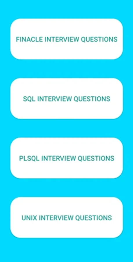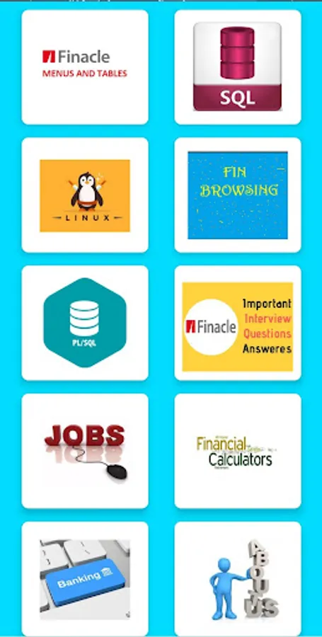 This app contains Menu options and their tables of different modules , SQL,PL/SQL ,Banking tutorials,interview questions, Calculators and job searching facility.