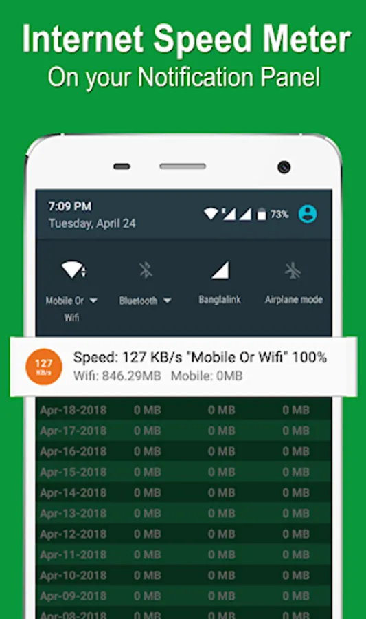 iSpeed - Internet Speed Meter Lite displays your internet speed in status bar and shows the amount of data used in notification pane. This helps you to monitor network connection anytime while using your device.