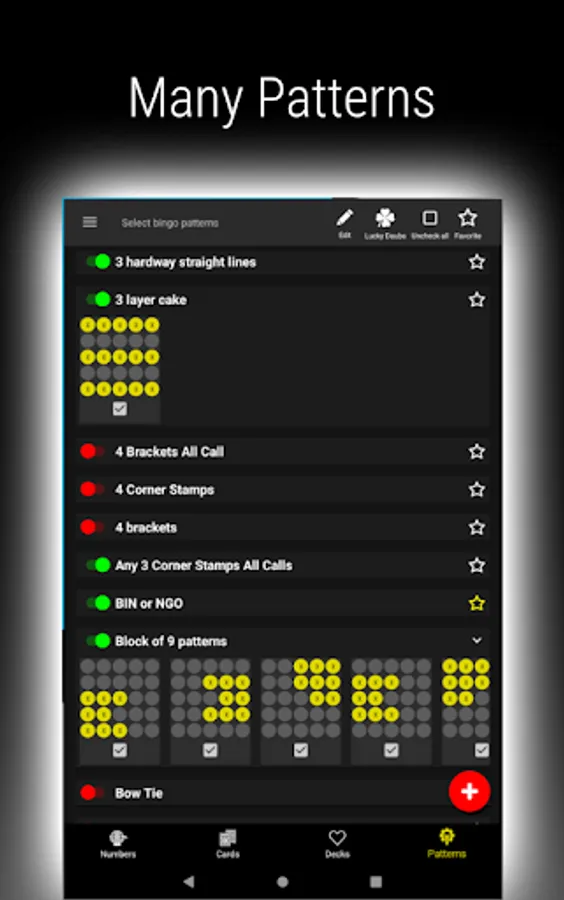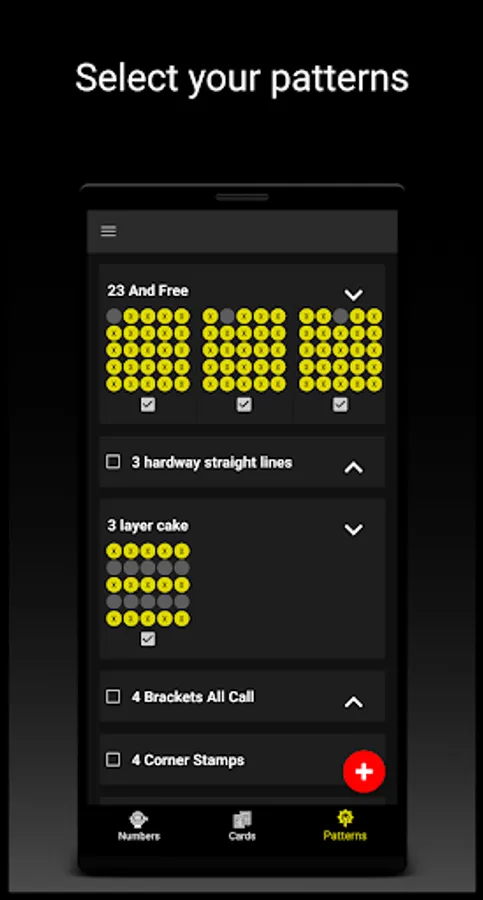 • Select your pattern from our list or add your 🎯 unique bingo game patterns