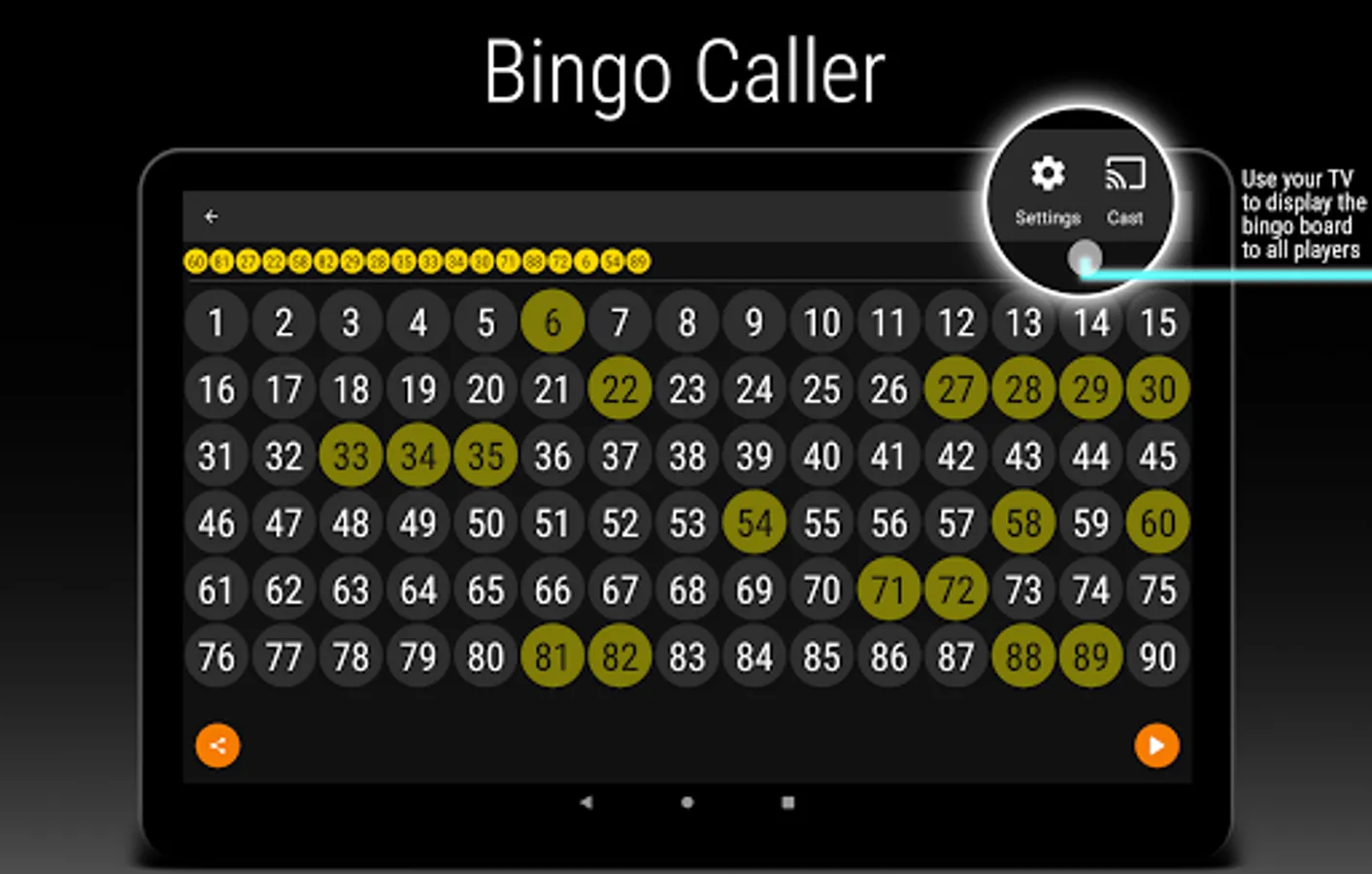 • Cast the bingo board 📺 to your TV for all players to see