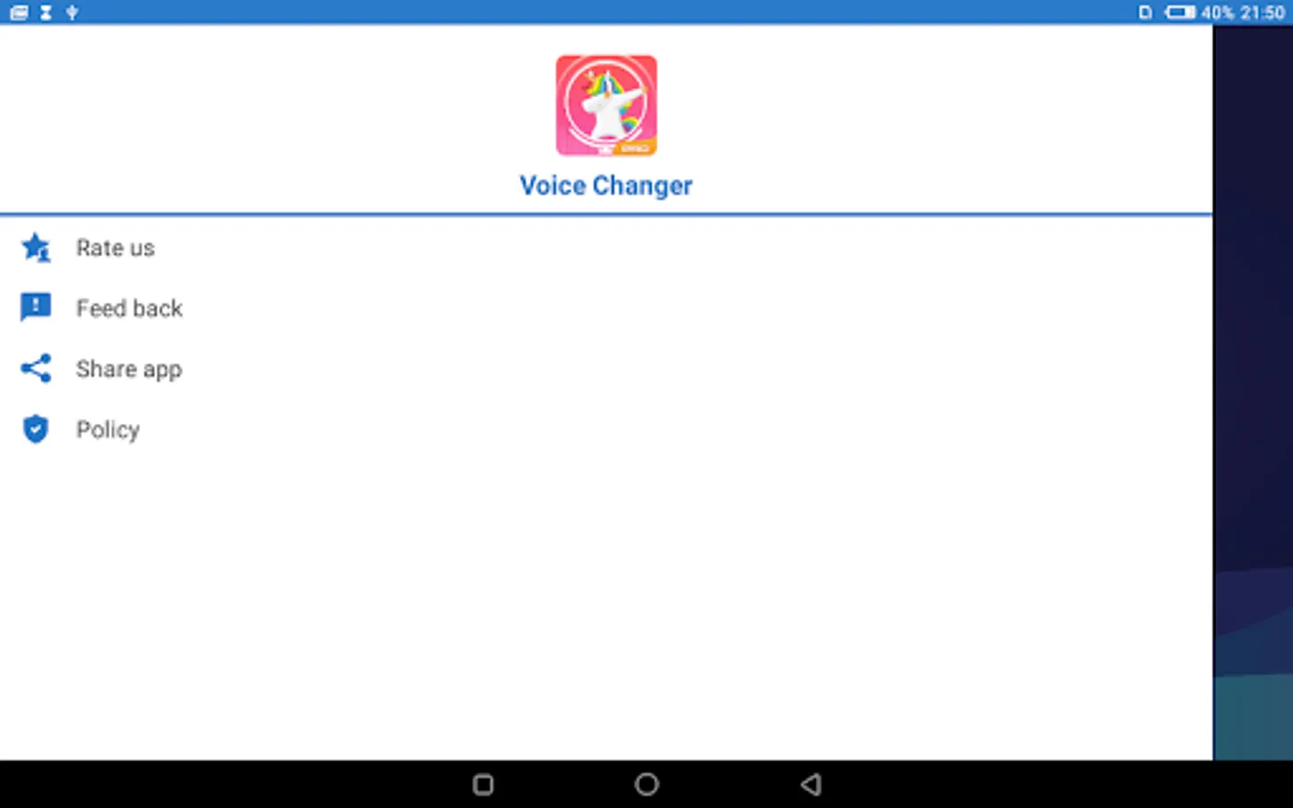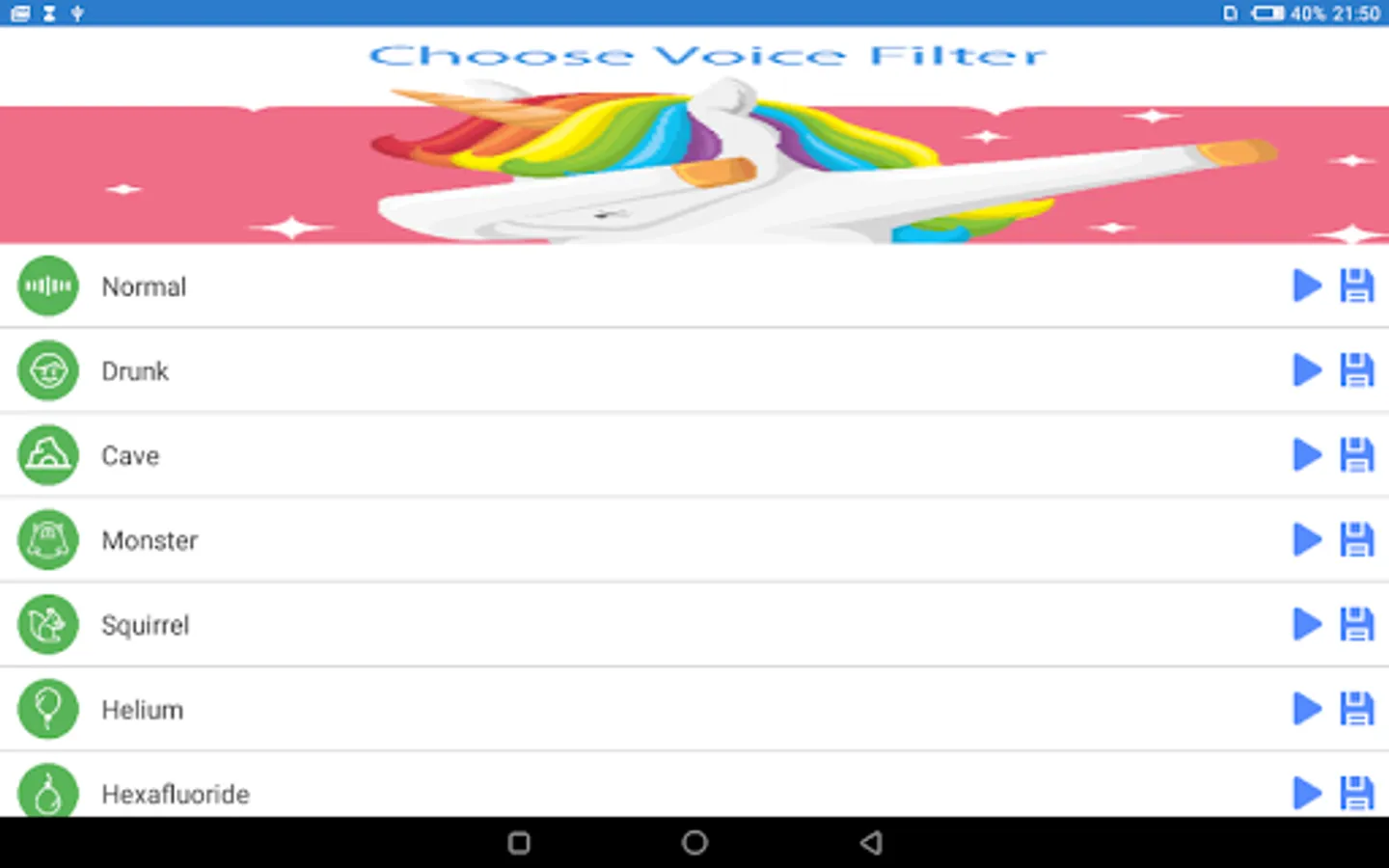 This voice changer lets you change your voice and enjoy listening to the modified voices. So you just record your voice, choose the desired effects and have fun listening and sharing your recordings with friends.