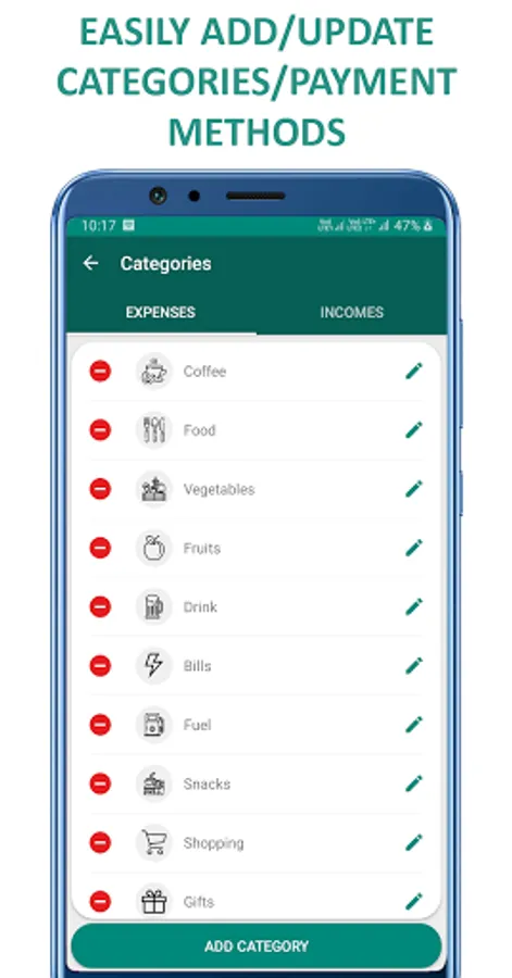 ◾Easily add your expense/incomes transactions with lots of different categories.