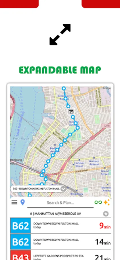 - Transit routes are available on the map along with the transit vehicle driving direction.