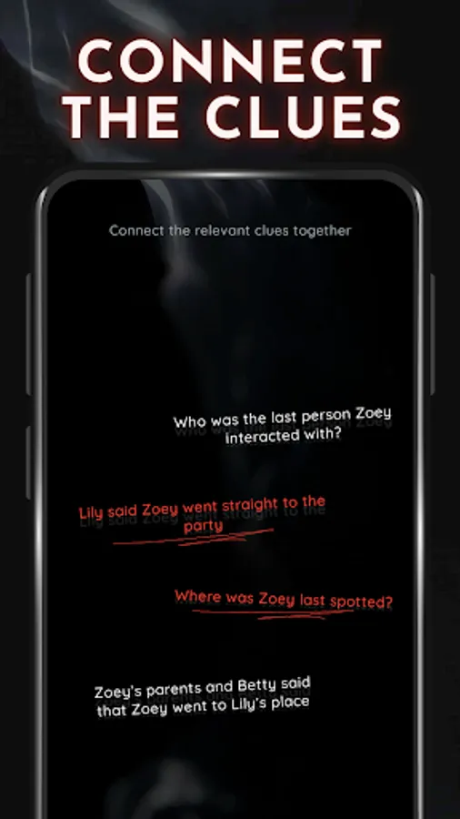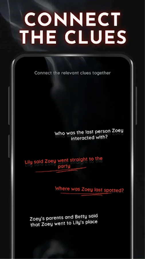 📱 Navigate through your phone and hers. Connect the dots on the suspect board for better visualization and deduction.