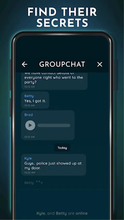 🎲 Experience the in-game realism through messenger, where you can send and receive messages to help you unfold the story events. Interrogate the ones you suspect and get an upper hand by revealing the hidden clues.