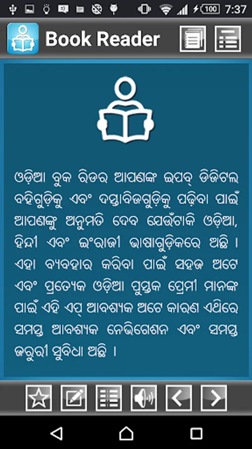 - It has Text-to-Speech support. Read Odia, Hindi and English books using TTS.