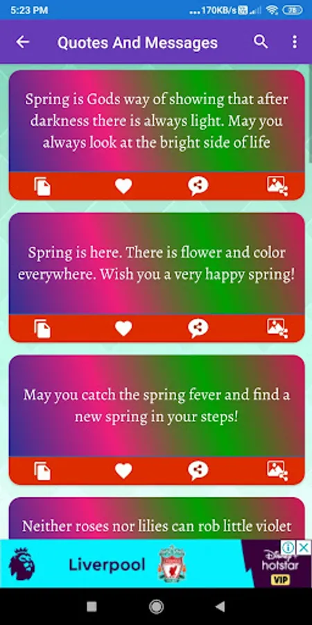 👉 Zoom Feature: App provides you user-friendly pinch zoom to see minute details and easily select best greeting card or quotes message that you like most.