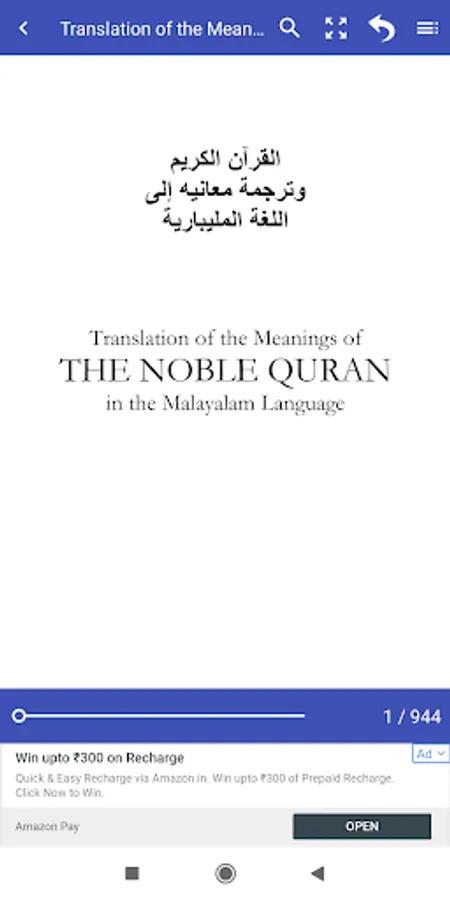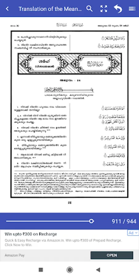 Quran Arabi to Malayalam Language Translation, All 30 Juz Complete Quran.