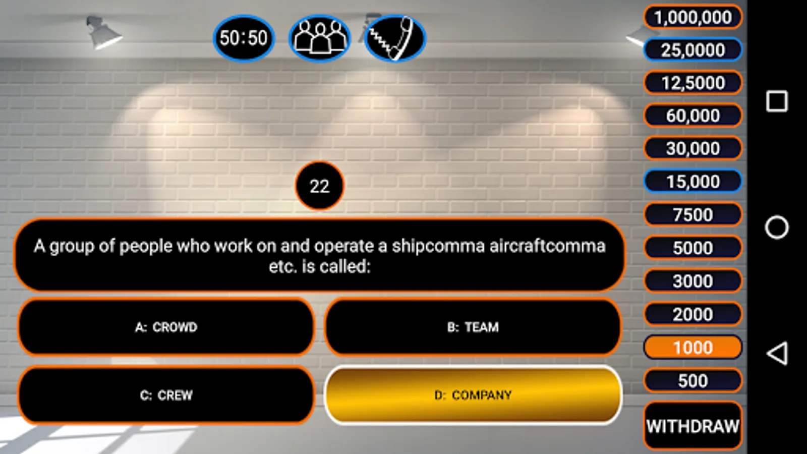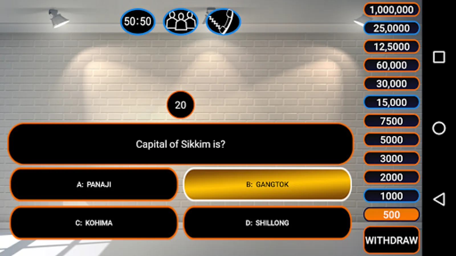 KBC Quiz is a best game in which can easily learn about General knowledge questions, Current affairs, English learning, and cricket quiz. So basically this is the best educational game.