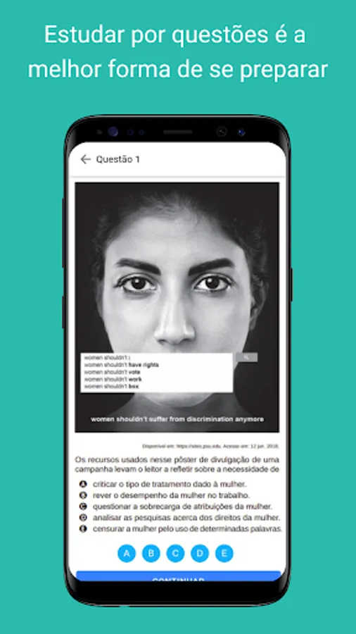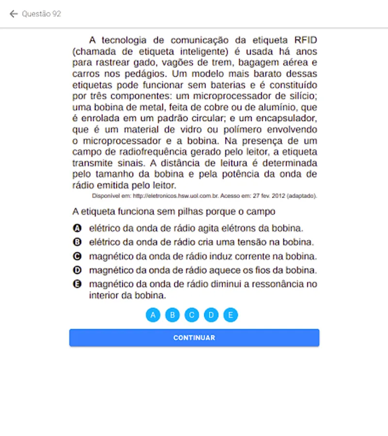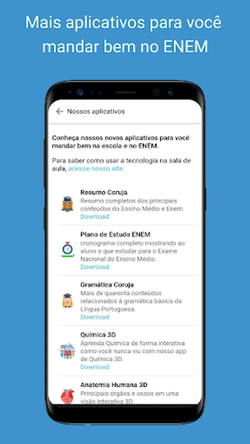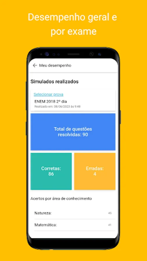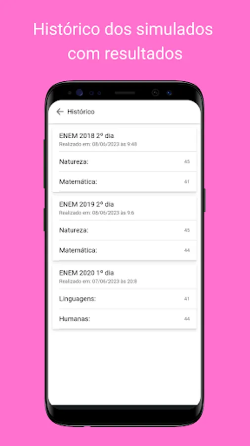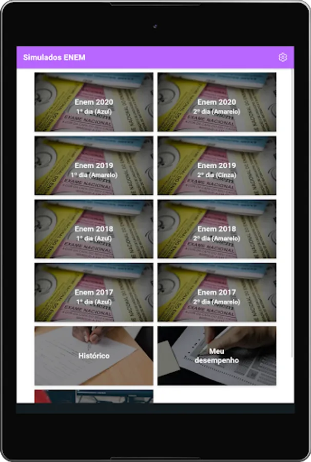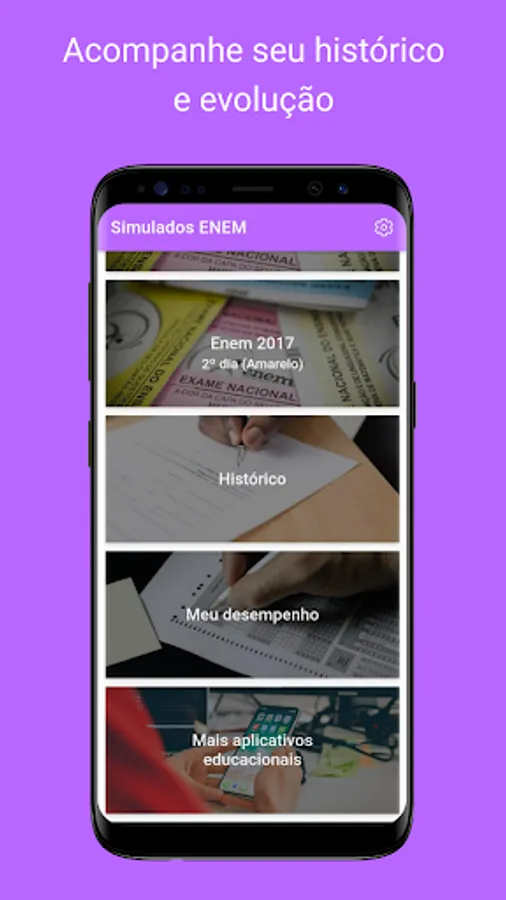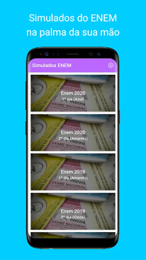 The Simulados ENEM application presents previous tests, the student can practice their studies and learning by performing the past ENEM questions. It aims to make students get used to the questions, the long test time and prepare them emotionally and psychologically for the exams.