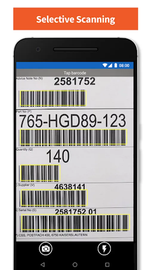Choose between two integrated camera barcode scanners. The traditional barcode scanner is ideal for older phone models, the recently introduced advanced barcode scanner provides selective barcode scanning - a very valuable feature if multiple barcodes are visible in the scan view.