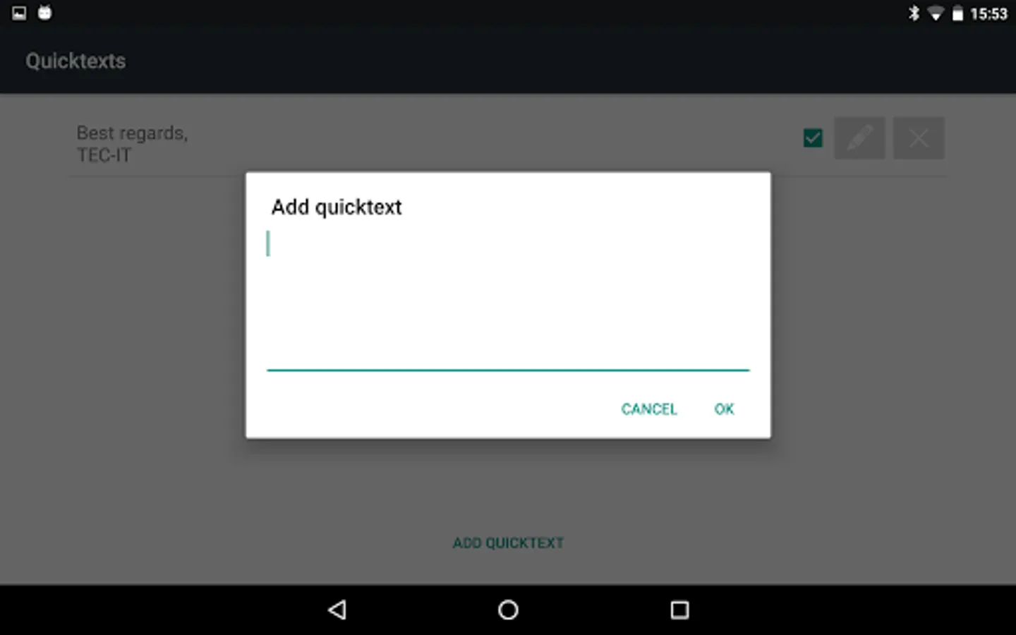 This keyboard is a convenient time saver! It reduces typing efforts and avoids typing errors. Tedious copy/paste is not required anymore; barcodes and QR codes, texts and NFC tags are scanned without app switching. The keyboard layout resembles the layout of the Android standard keyboard - you will immediately be familiar with it.