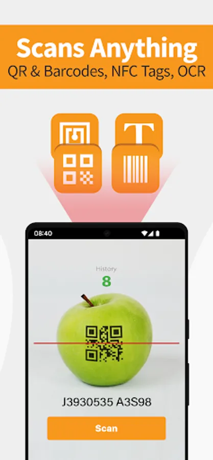+ Scans EAN, UPC, Code 128, Code 39, 2 of 5 interleaved, Code 93, Codabar, GS1 DataBar, QR Code, Data Matrix, Aztec Code, PDF417