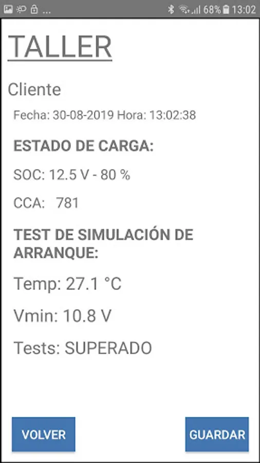 The application allows you to perform the complete battery analysis via Bluetooth link with the possibility of issuing reports to send to customers by email or for later printing on paper.