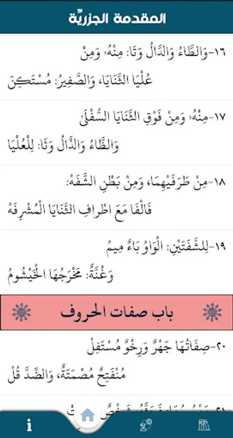 This application came to make it easier for students of knowledge to memorize and understand the text because of its great benefit in the science of recitation of the Noble Qur’an.
