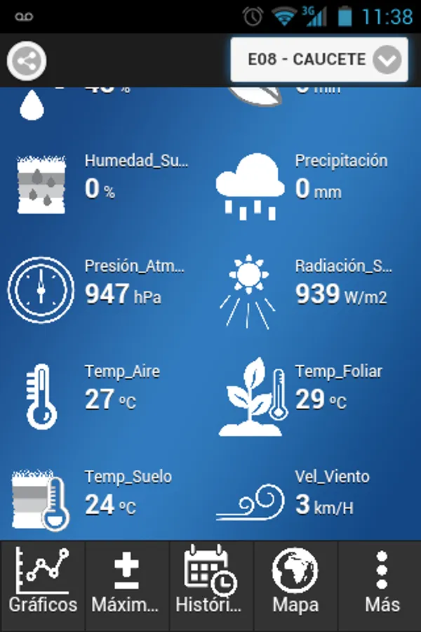Tecmes Mobile provides accurate data readings on temperature, humidity, wind direction, rainfall, comparative, maximum and minimum charts, historical data and more.