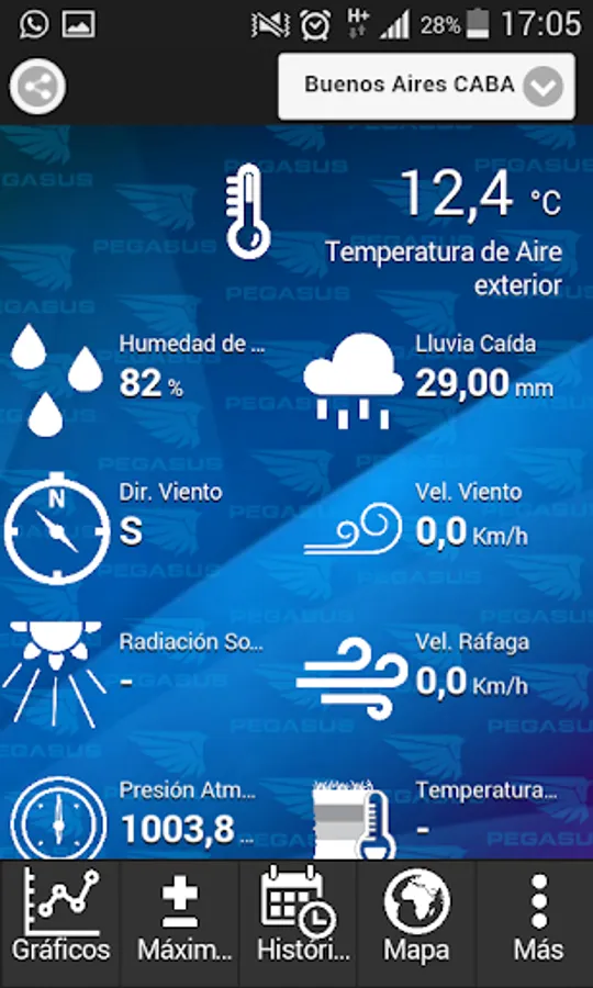Pegasus Mobile provides accurate data readings on temperature, humidity, wind direction, rainfall, comparative, maximum and minimum charts, historical data and more.