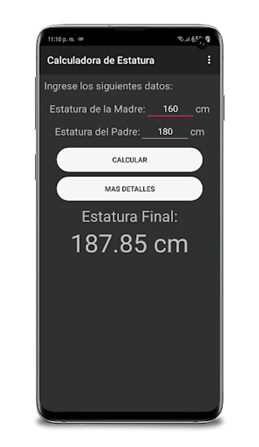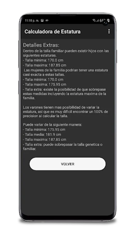 This application can calculate your final size because it has its own formula to calculate the maximum size that a person can reach within their family or genetic size.
