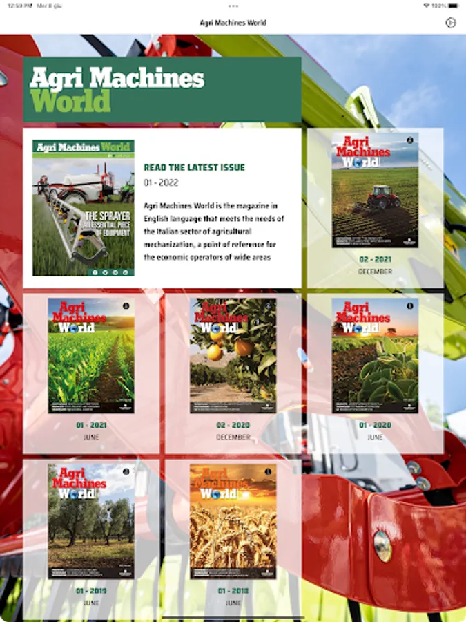 Agri Machines World is an international magazine that responds to the needs of the Italian agricultural mechanization sector, our flagship and reference point for economic operators in many foreign countries, “hungry” for technological innovation, who consider Italian industries to be at avant-garde in the creation of innovative systems and machinery.