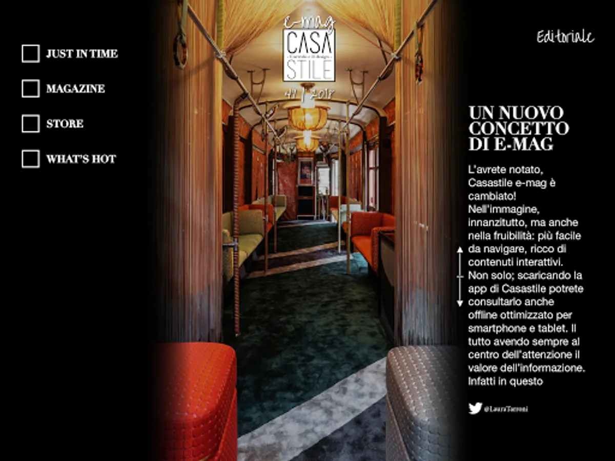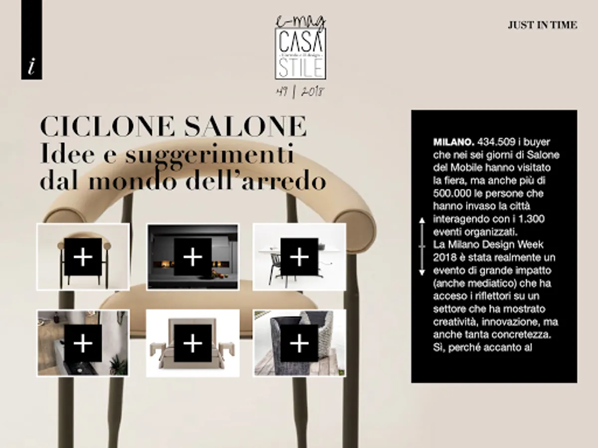 Casastile Digital is a digital magazine also optimized for tablets and smartphones that updates on the latest product news, on design courses, live on the trend, on the stores more innovative. Equipped with strong interactivity, it is rich media, video, slide show, gallery, link, product sheets.