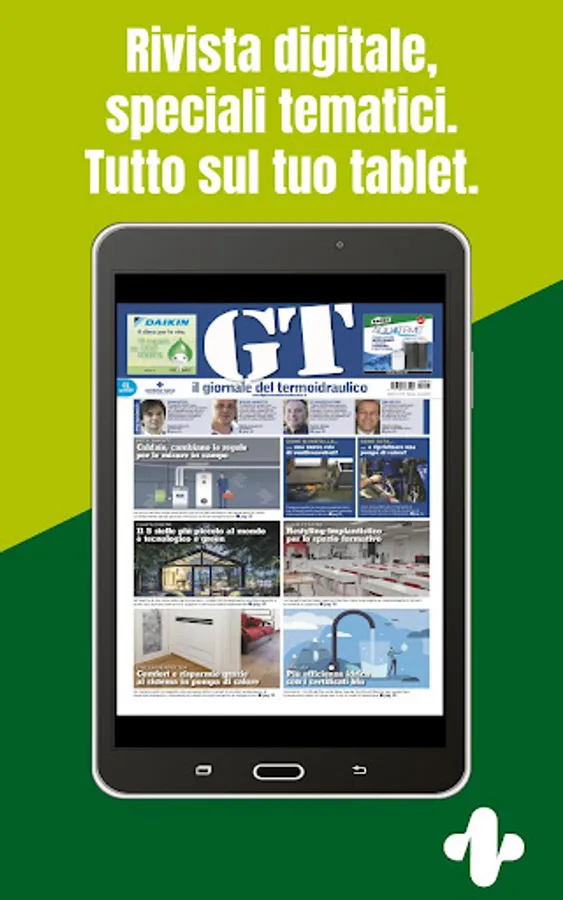 GT - The Journal of the Plumbing is the monthly best-known and in the plumbing and heating sector, reaching more than 20,000 professionals each month installing and maintaining the plants. The newspaper is full of current news related to plant engineering, focusing on the market, major exhibitions of product, reportages on "how to install" and interviews with experts on prestigious installations. Each issue offers a range of technical articles and columns relevant to the training of installers and their daily activities, with a focus on regulatory aspect. A technical committee, composed of prominent professionals plant, works closely with the review by providing timely updates in the regulatory, technological and management.