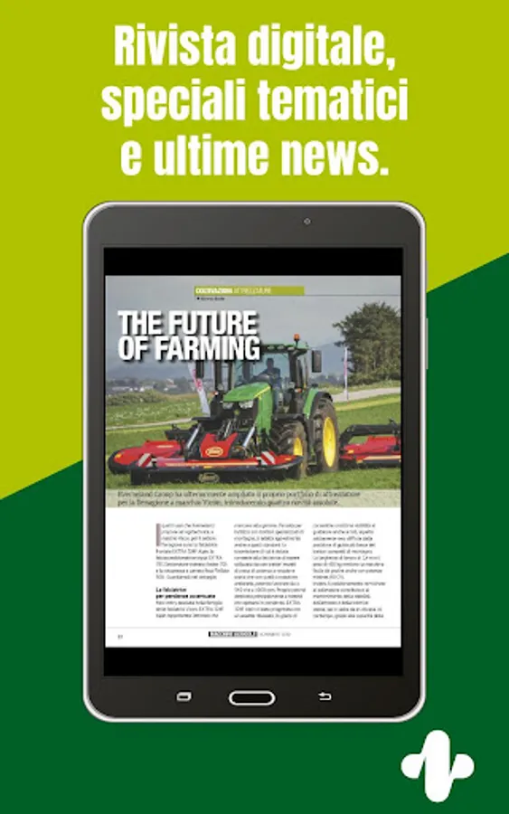 The magazine is aimed at all users of machines and equipment in agriculture and is a popular support for the Italian industry of agricultural mechanization. Each issue offers content approved by an authoritative Scientific Director, intending to direct not only those interested in buying the machine best suited to the individual applications, but also the end user, for optimum use of resources. The magazine offers an update on new technology, components, economic and regulatory aspects and increasing attention to alternative energy sources, with the aim to keep constantly updated the farmer on technological evolution of machines and equipment.