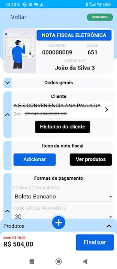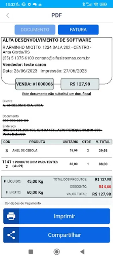 * Change the unitary value of the products (remembering that the suggested original value of the product is also saved in the NFe);