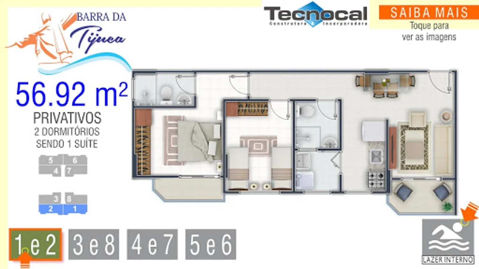 Residencial Barra da Tijuca offers two apartments with a bedroom suite and a parking space, and a structure that has adult and children's pools, a ballroom, fitness room and children's play area. Your family will love!