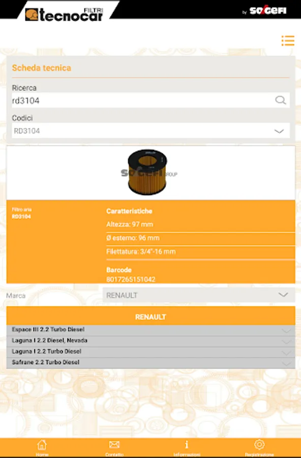 Simple to consult, the Tecnocar application makes it easy to identify the appropriate reference.