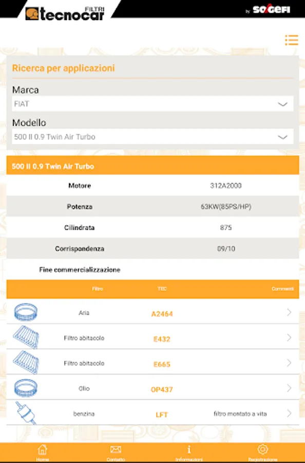 The Tecnocar app will give you access to the full Tecnocar range of oil, air, fuel and cabin filters for cars and light commercial vehicles.
