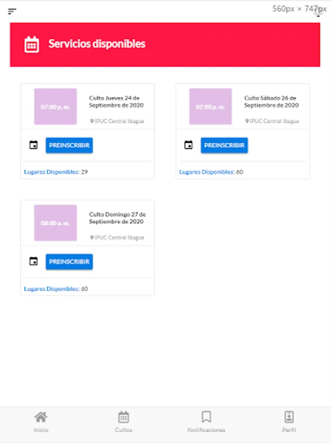 This application allows pre-registration to services performed by Iglesia Pentecostal Unida de Colombia and its subsequent verification of attendance without contact.