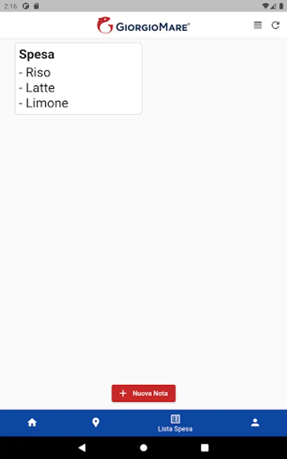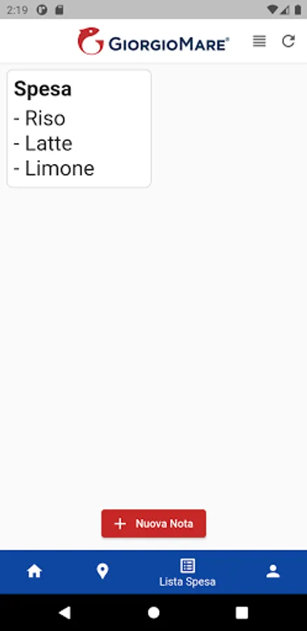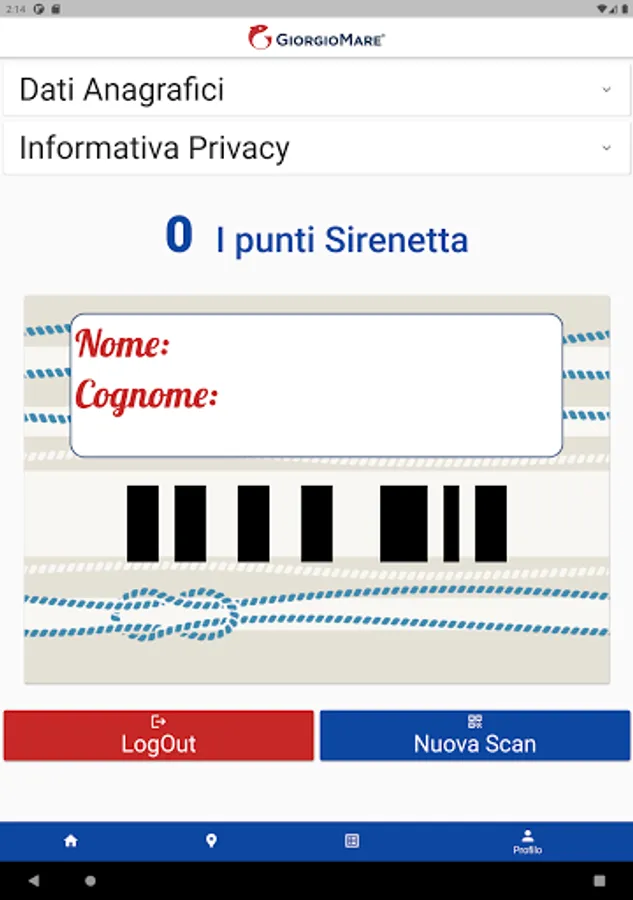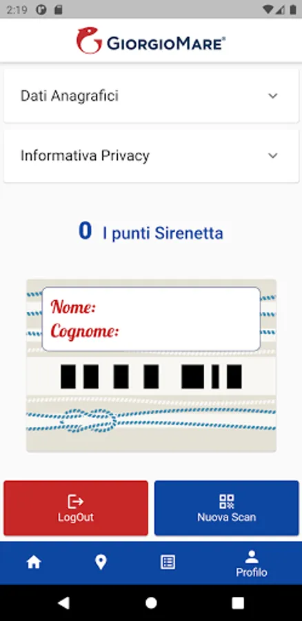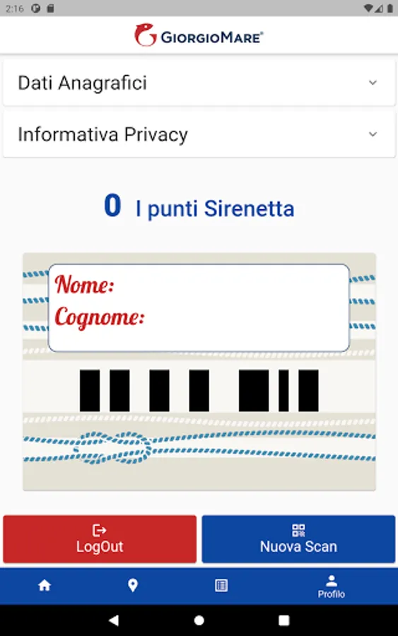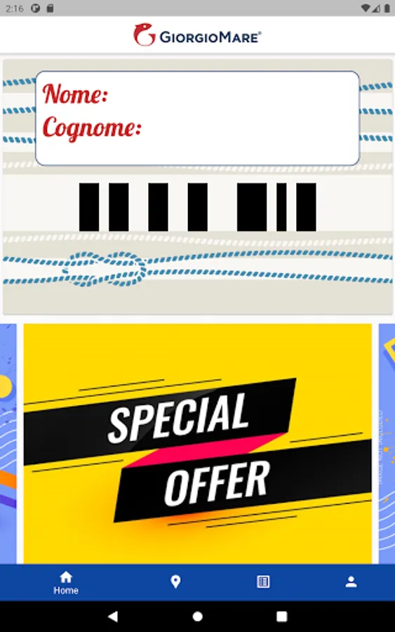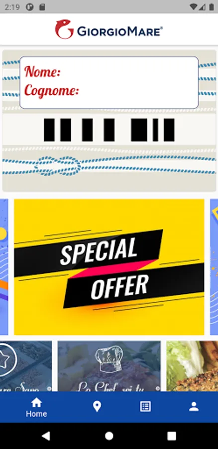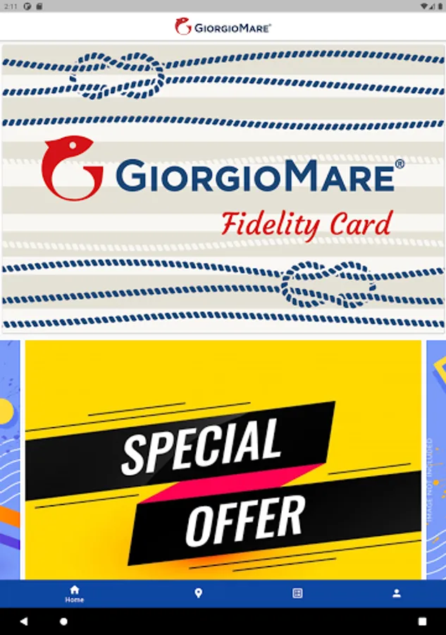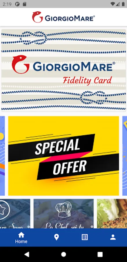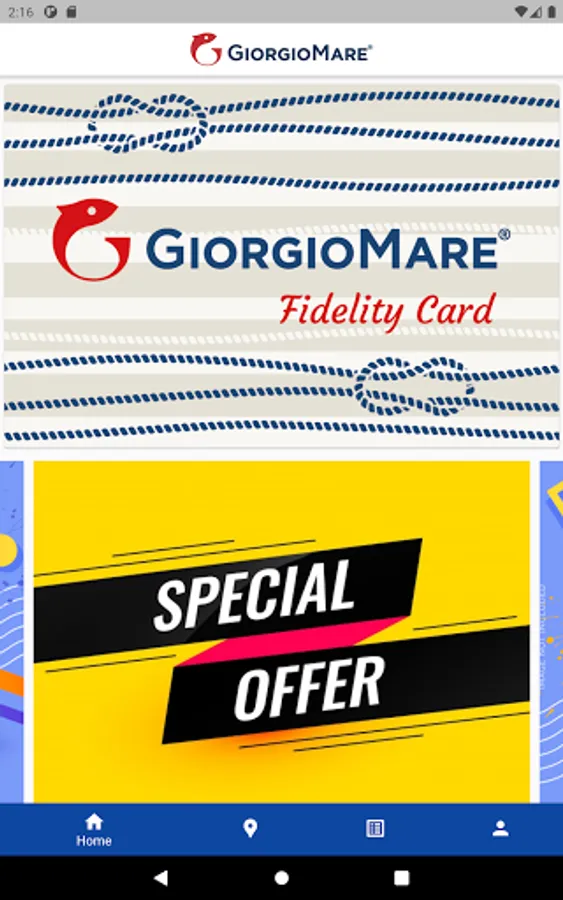 App for viewing offers, recipes, shops and collected points for GiorgioMare Fidelity Card.