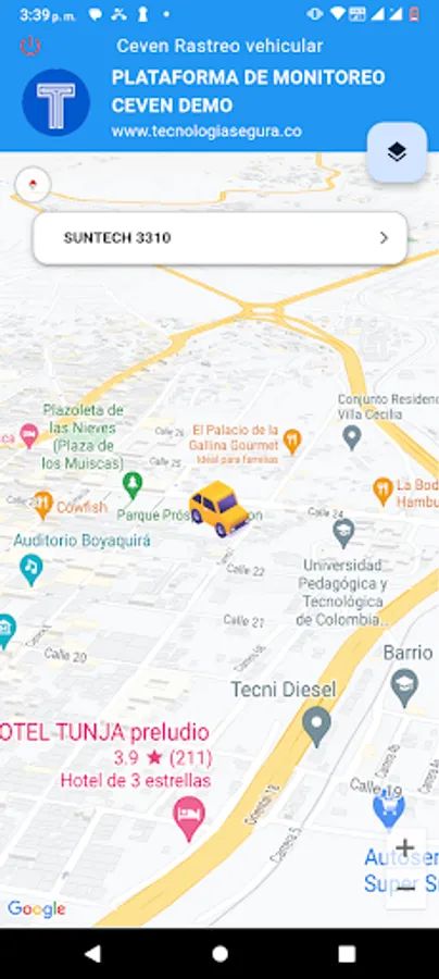 Application associated with the ceven platform to georeference vehicles through GPS devices.