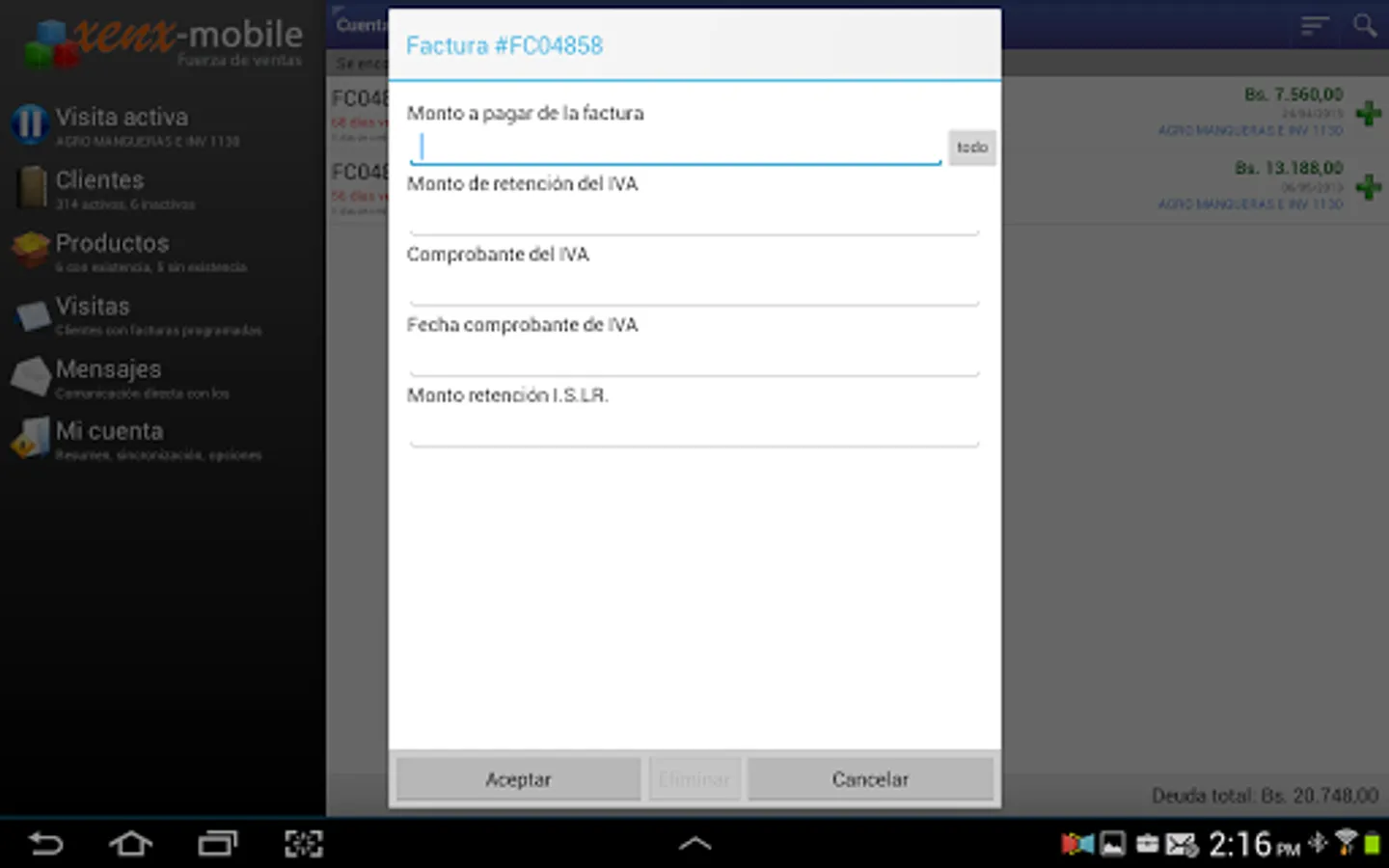 All processes can be performed with or without an Internet connection, as the data are in each phone. In case of processing orders in an instant or locality, where no Internet connection, the system synchronizes just detect automatic connection, or at the request of the seller, at any given time.