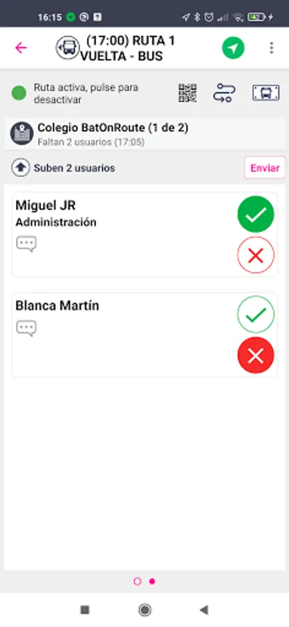 It offers a revolutionary and efficient communication service to users with notification of the arrival time at the stop via email as well as possible delays in the route, avoiding unnecessary waiting at the stops, since they will receive an alert when there are 5 minutes left for the pick-up or arrival at the stop; as well as information, for your peace of mind, when the bus has started the return route or when it arrived at the center, and allows us to monitor the route in real time.