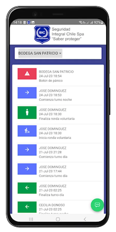 Exclusive application of the company SEGURIDAD INTEGRAL CHILE SPA for use with their supervisors.