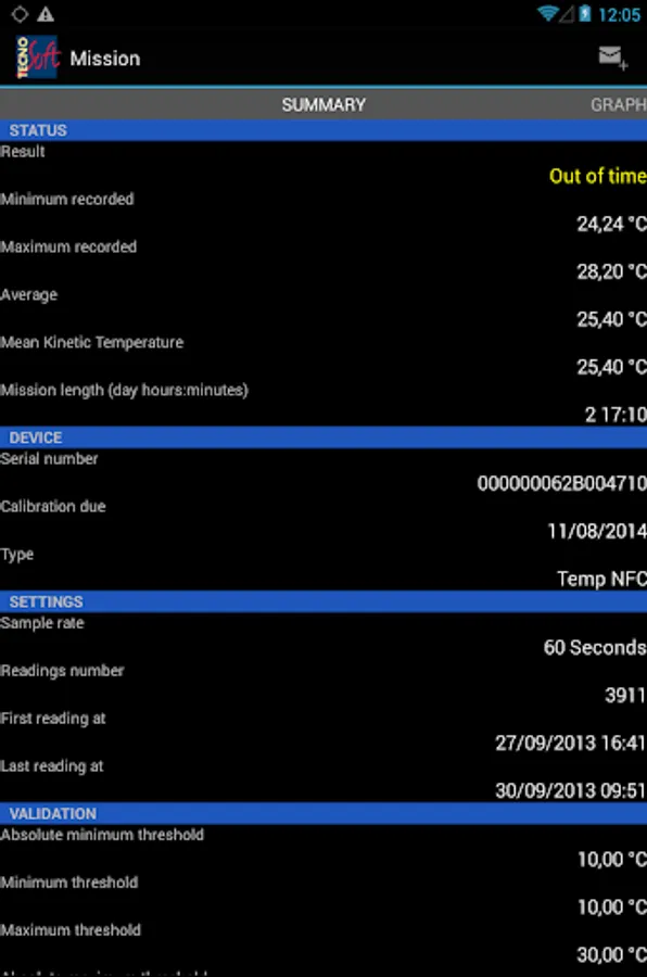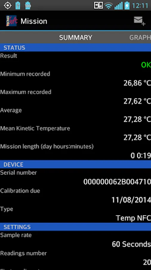 - TempNFC programming and downloaded of the recorded data
