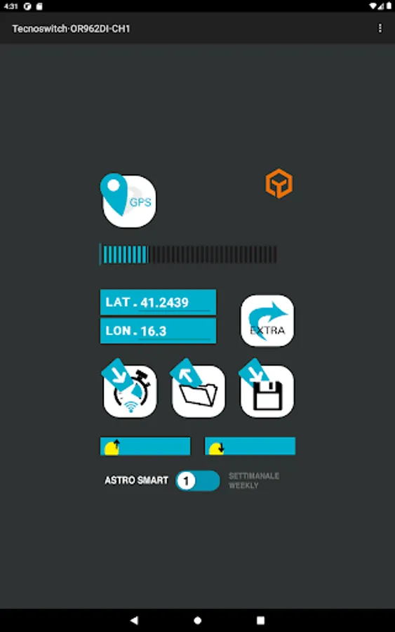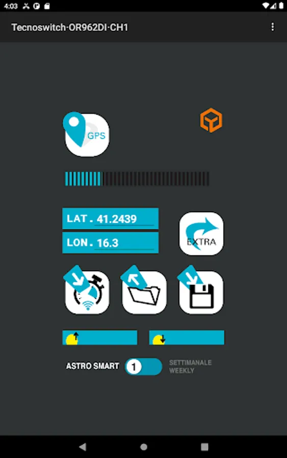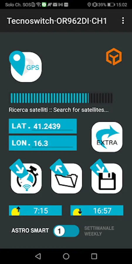 This free App solves the problems related to setting the coordinates of the place where the device will go to act, using the ability of the smartphone to determine its geographical position through the built-in GPS module. The position thus determined is then used to calculate the sunrise and sunset times for the whole year and the processed data are finally sent via Wi-Fi connection to the device which stores them in its permanent memory.