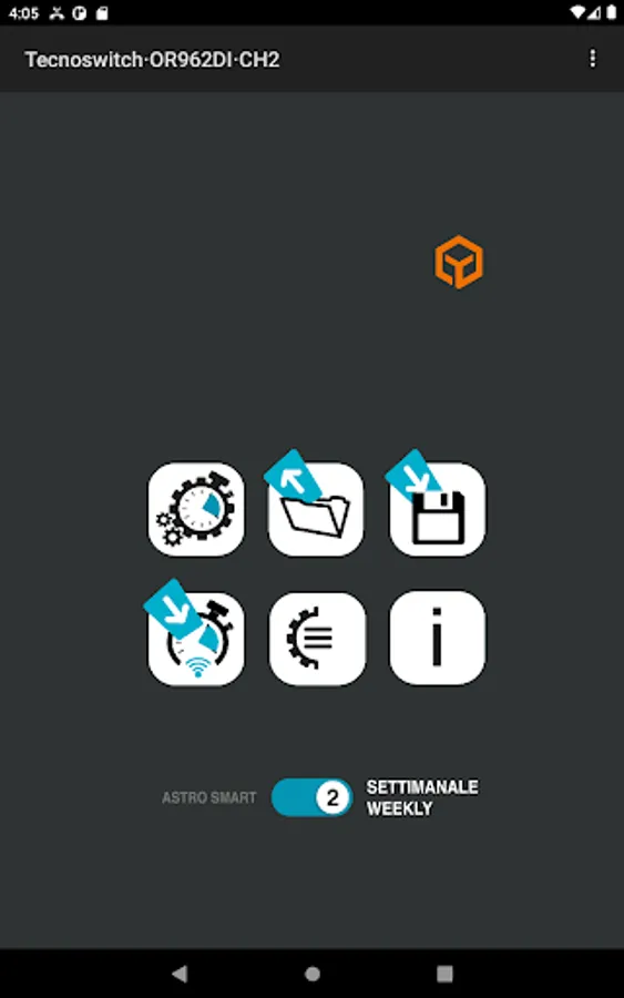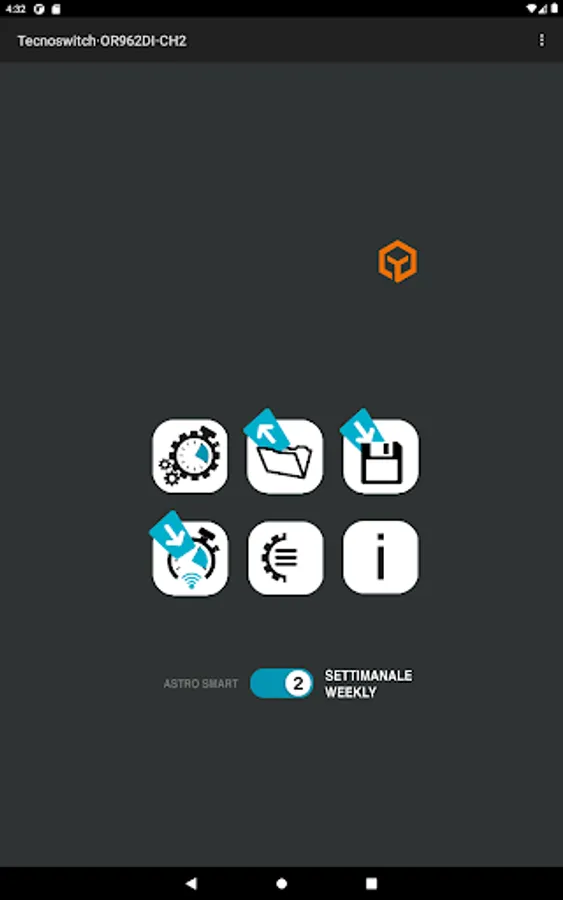 The Tecno Switch OR962DI ASTRO-WEEK - 2C App is used to control and program the Astro / Weekly 230V 2Din 2cn Wi-Fi + APP / ASTRO-WEEK - 2C Time Switch in a simple and intuitive way. In summary, this device is able to switch on a load at any time of the day and week (even for 1 second) and to automatically manage the switching on of the load as a lamp at sunset and to switch it off at dawn by recognizing the times at which these events occur, throughout the year and in any geographic location.