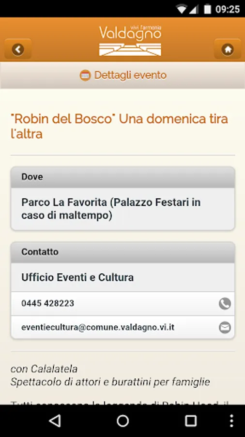 With Vivi Valdagno you can read the latest news from the City, see upcoming events, easily contact the municipal offices, find points of interest on the map of the territory, and much more ...