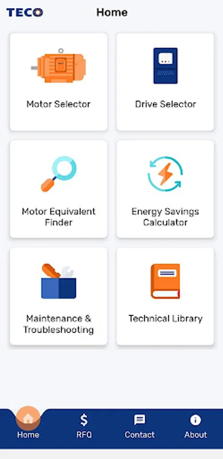 This app was built to answer the most commonly asked technical questions about TECO flagship MAXe3 and AFJE product ranges up to 450kW. It contains a technical library, installation data, virtual slide guide, electrical and mechanical data, and an energy savings calculator. It provides VFD sizing to suit a chosen motor and application. Finally, you can also create a product basket and send a direct enquiry to TECO sales.
