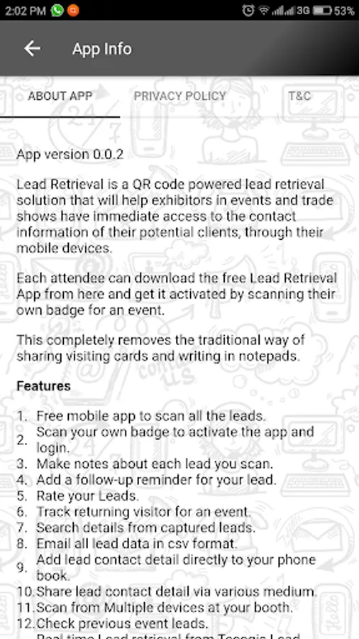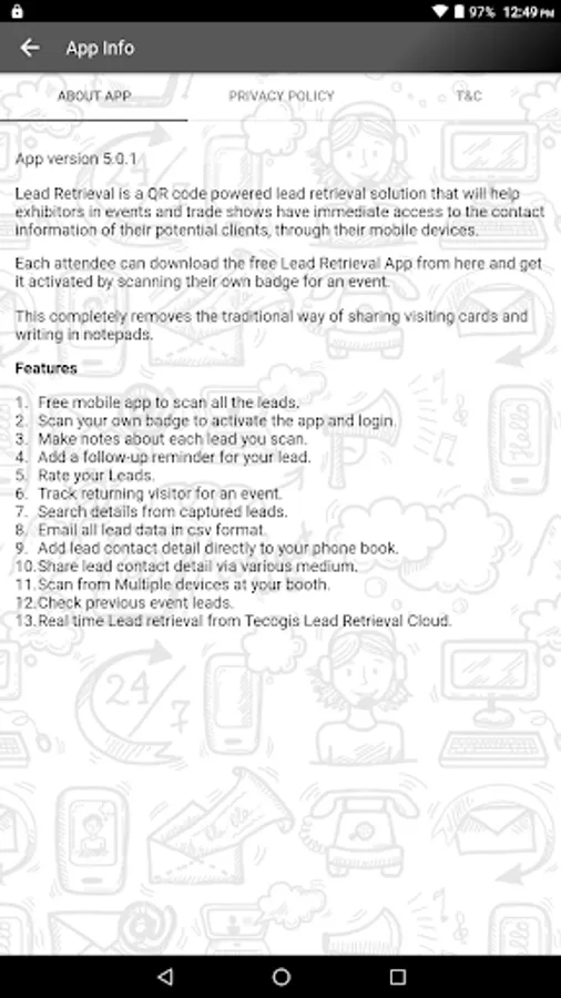 Each attendee can download the free Lead Retrieval App from here and get it activated by scanning their own badge for an event.
