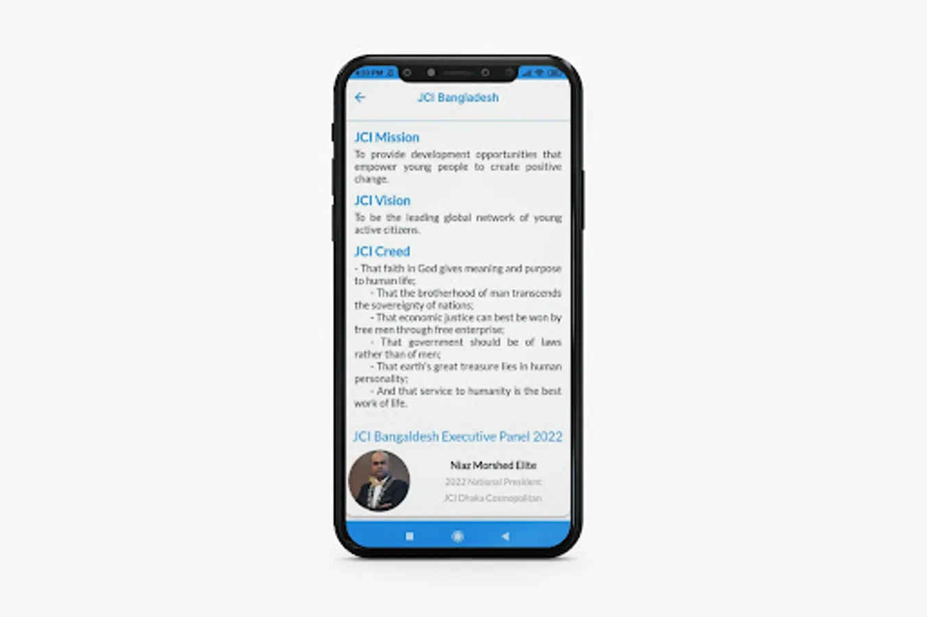 The App is designed to be a social instrument where the members can actively communicate, update and participate in events organized by JCI Bangladesh.