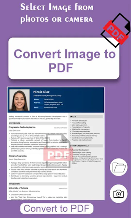 With the Images to PDF Converter app, you can convert images to pdf online without any limitation. All you need to do is select the image file and then select the destination folder to save the pdf document.