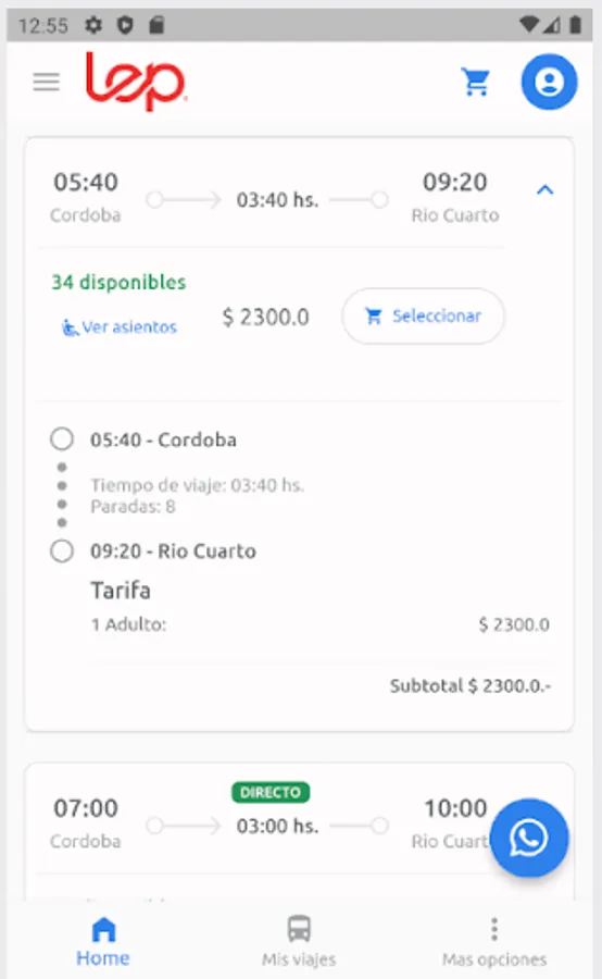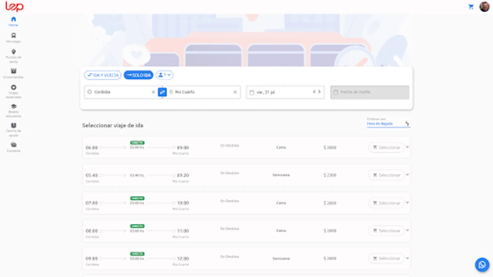 Now you can buy and book your tickets for travel to any of our destinations! such as Rio Cuarto - Cordoba - Santa Rosa de Calamuchita - Villa General Belgrano - Villa del Dique - Reservoir - Almafuerte - Laboulaye - Vicuña Mackenna - Adelia Maria and more !!!