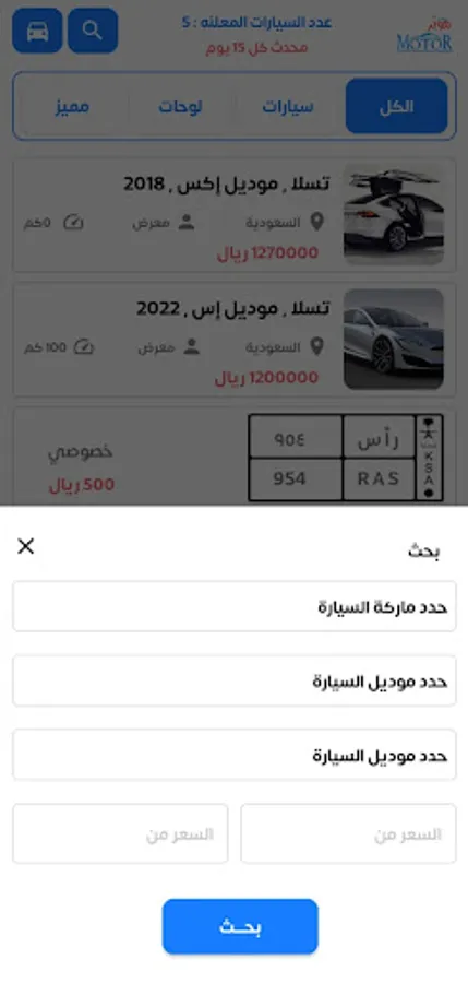 A specialized application to display car ads, buying and selling and car plates
