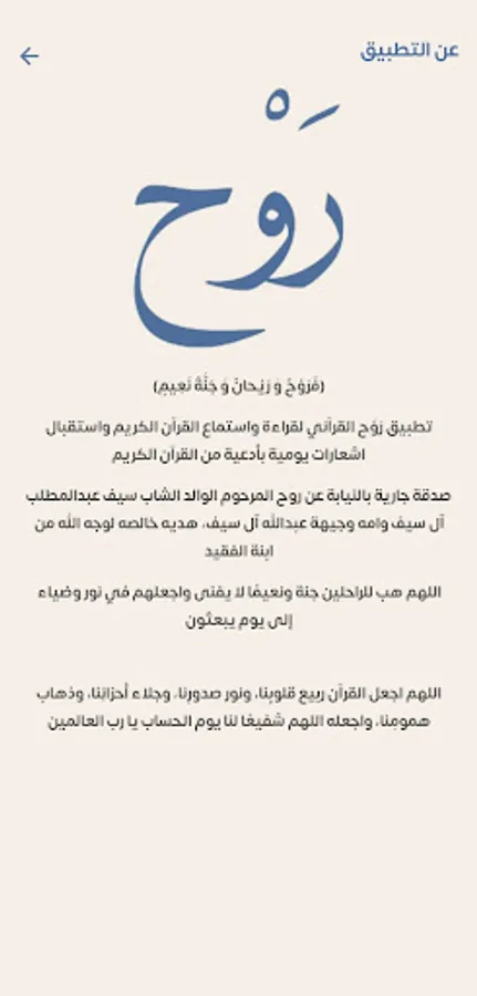 The application of the spirit of the Qur’an to read and listen to the Holy Qur’an and receive daily notifications of daily supplications from the Holy Qur’an