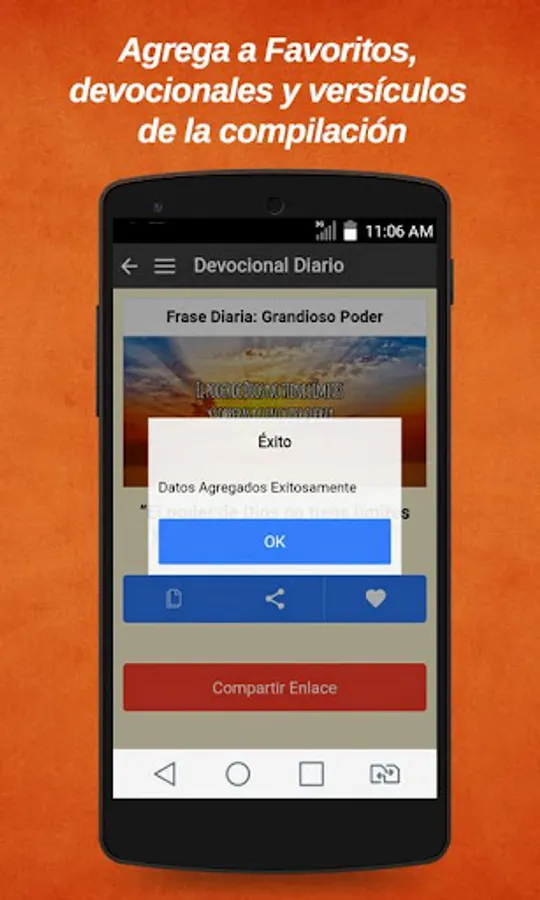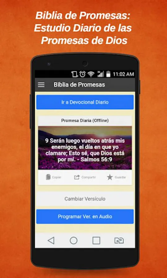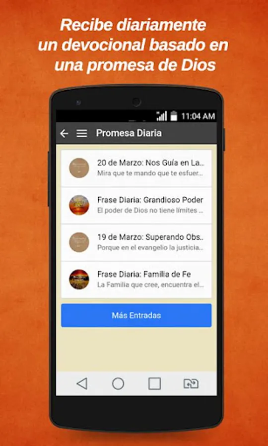 Daily Devotional : To start the day you receive based on the study of one of the promises of God in the holy scriptures devotional. It accompanied by a cristocénctrica reflection and prayer in the morning will be.