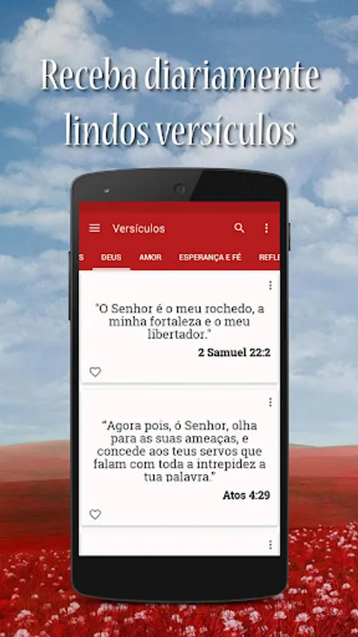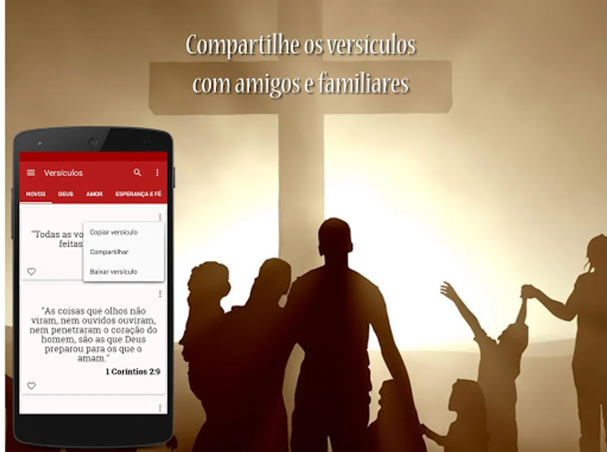 With these verses you can better understand the word of God and still share the bible messages with your friends and family on WhatsApp or Facebook, fill your heart with love and the sacred phrases of Jesus Christ, save your favorite verses, search by biblical phrases and always have the word of the Holy Bible close to you.