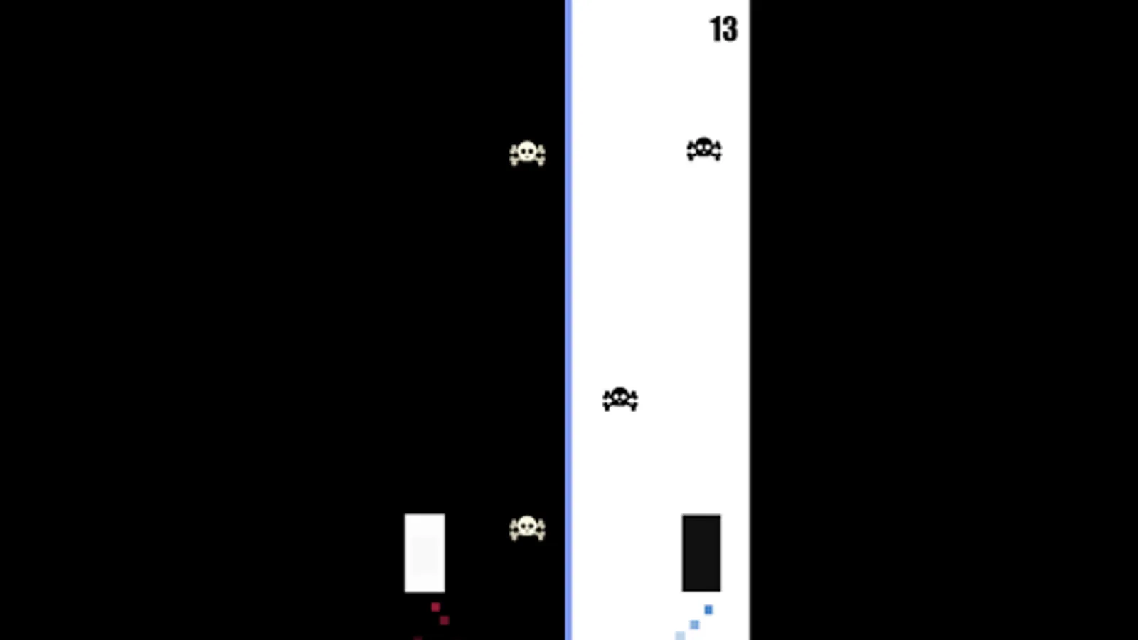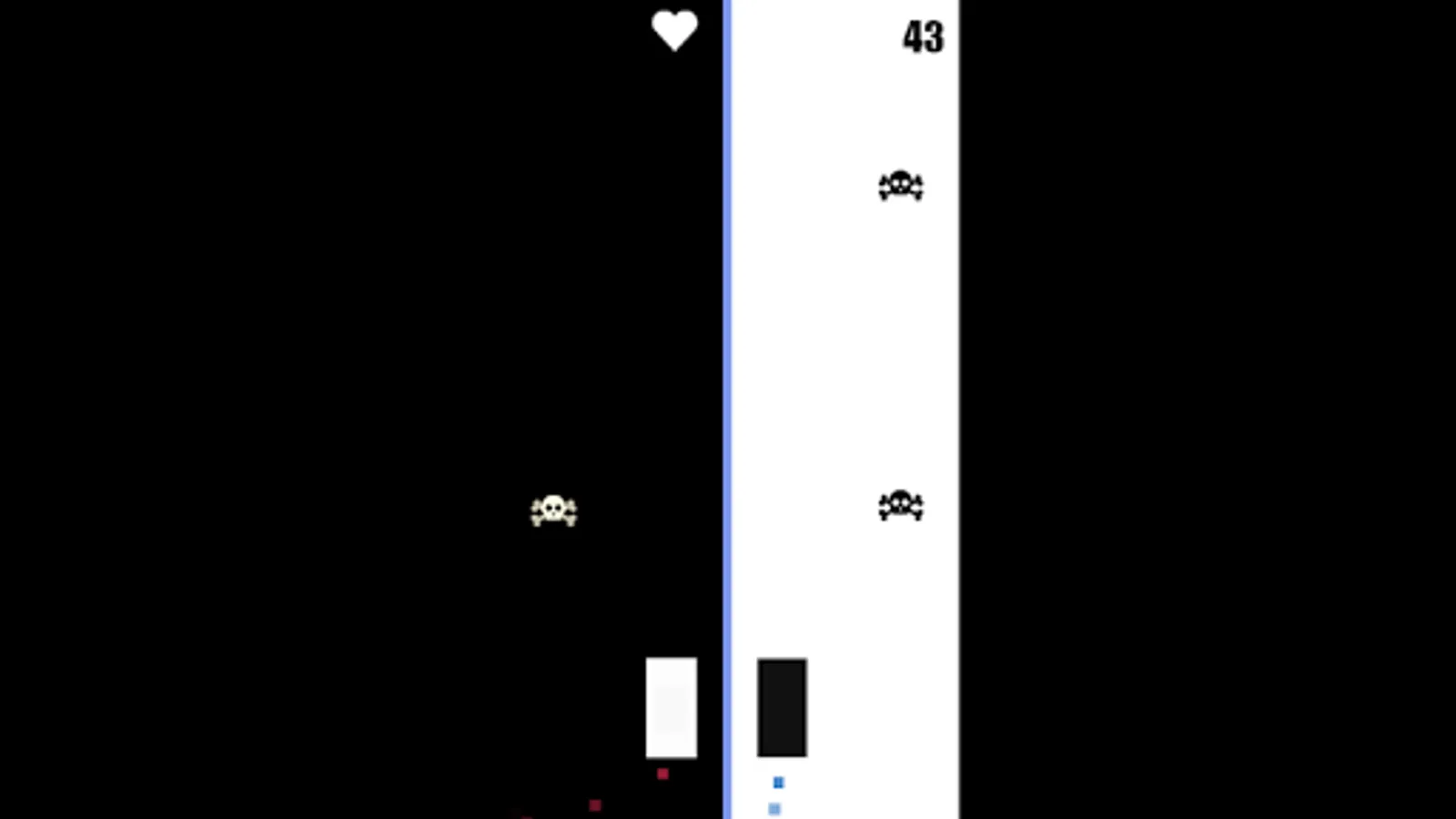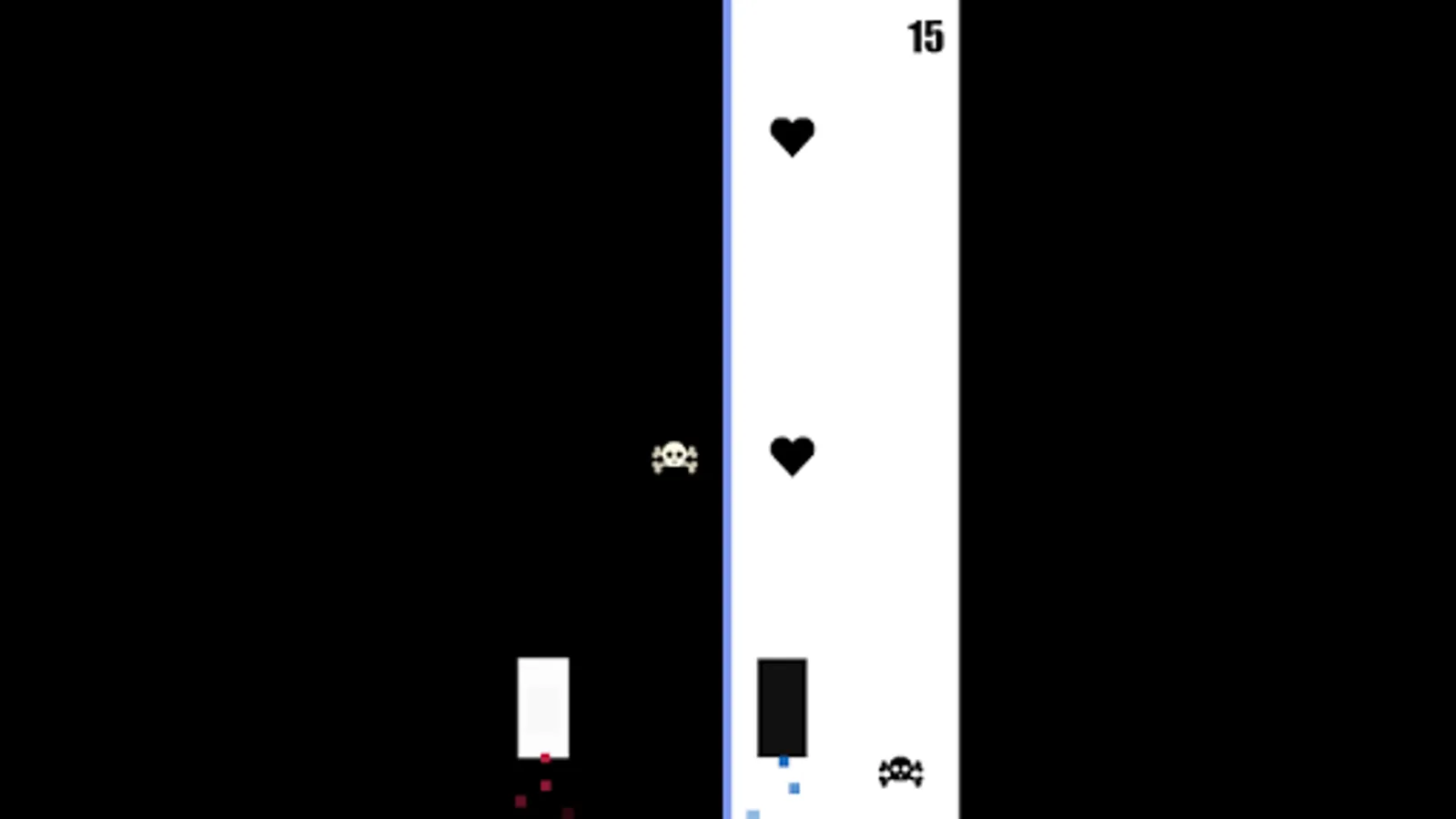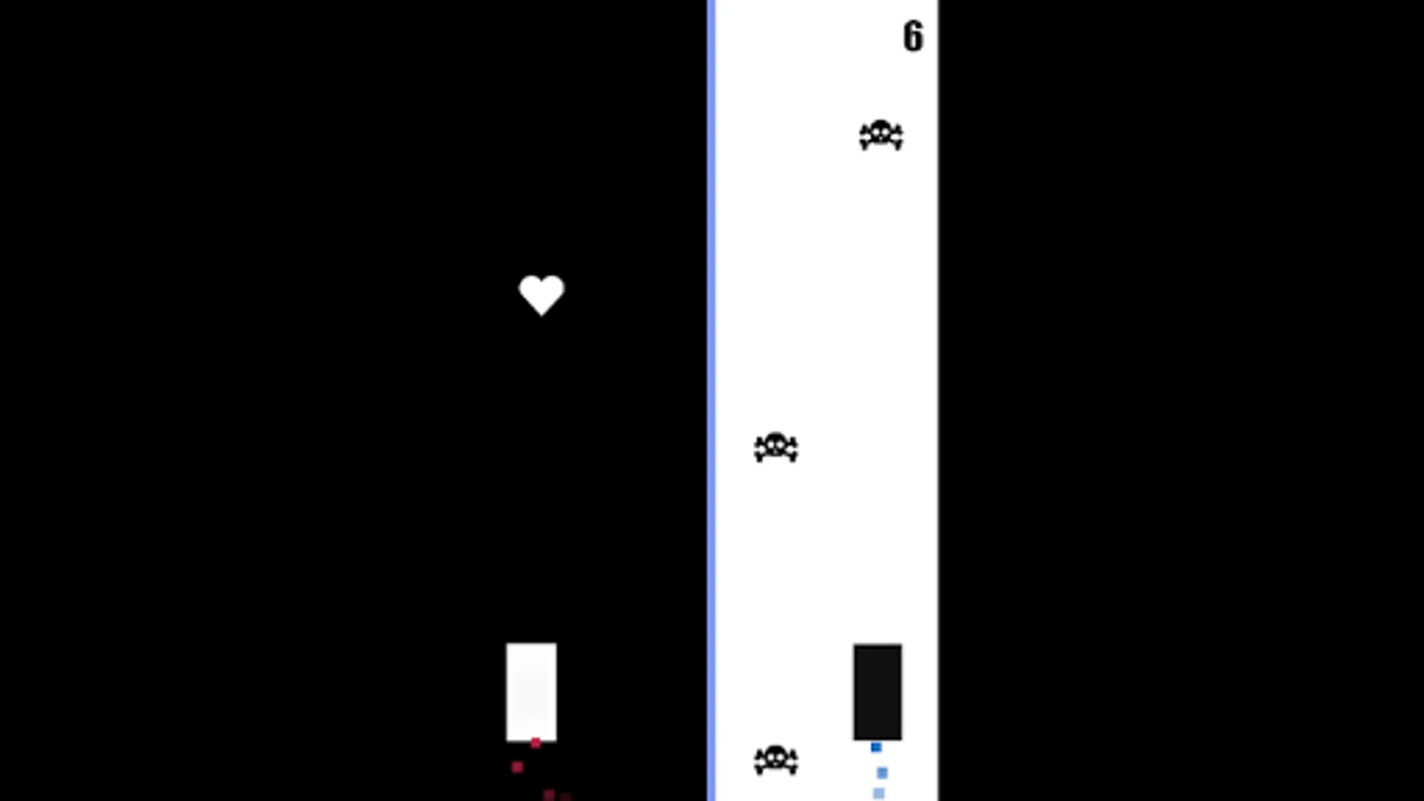 Your game characters are the two squares, black & white. The challange of this game is to avoid all the skulls but do not miss any of the hearts! To do this, simply move the squares left and right.